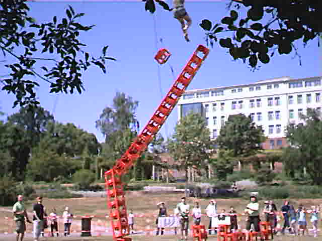 MoGugge 2011 In Zusammenarbeit mit Pfalz-Vertikal betreuen wir bei dem Jugendevent MoGugge das Projekt Kistenklettern. Für das Sicherheits-Equipment ist die Firma Pfalz-Vertikal verantwortlich.Wir wiederum sorgen für die Technik. Die Beschallung kommt von Sound4You. Jeder Teilnehmer bekommt vor Ort eine Urkunde mit Bild und den erreichten Kisten ausgedruckt, auf Wunsch wird ihm auch die Urkunde zugemailt. Der aktuelle Highscore wird auf einem Display dargestellt und durch eine UMTS Anbindung sofort im Internet veröffentlicht. Die komplette Abwicklung wird mit DAVID von Tobit.Software erledigt. 21.05.2011 27 Kisten - Jan Jakobi - 10 Jahre alt